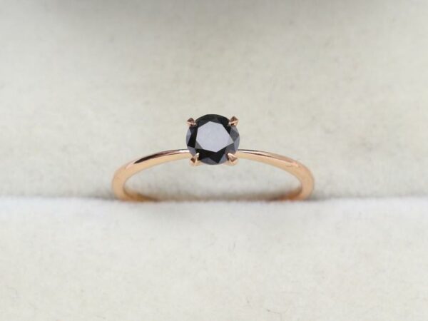 Natural black diamond solitaire ring in 14K rose gold.